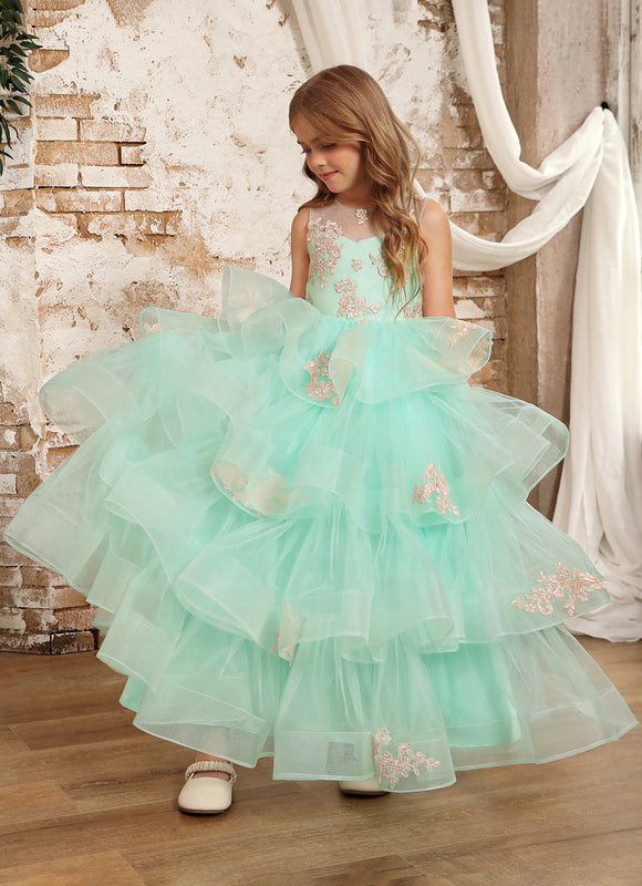 Offrez à votre princesse cette somptueuse robe pastel fille turquoise qui transformera chaque événement en un moment magique. Son élégant tulle couleur menthe orné de délicates broderies dorées fait de cette robe princesse un véritable chef-d'œuvre. Les multiples volants superposés créent un effet de mouvement enchanteur qui captivera tous les regards lorsque votre fille se déplacera avec grâce. Chaque détail de cette robe turquoise a été pensé pour allier confort et style princier, permettant à votre enfant de se sentir comme une véritable héroïne de conte de fées tout en restant à l'aise pendant des heures.